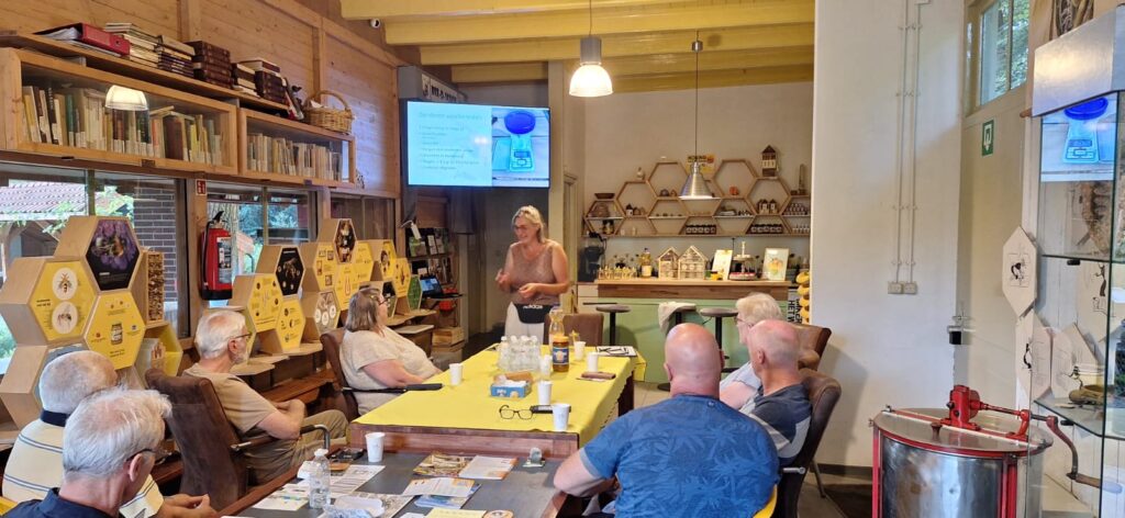 Tijdens de bijeenkomst kregen wij uitgebreide uitleg over de Aziatische hoornaar. We leerden hoe deze eruitziet, waar hij bij voorkeur leeft en wat hij eet. Wat vooral indruk maakte, is dat één nest van de Aziatische hoornaar wel tot 25 kilo insecten per seizoen kan verorberen. Ter vergelijking: een Europees hoornaarnest eet nog niet eens de helft daarvan. Het is dus duidelijk dat de Aziatische hoornaar een grote bedreiging vormt voor onze insecten en bijen.